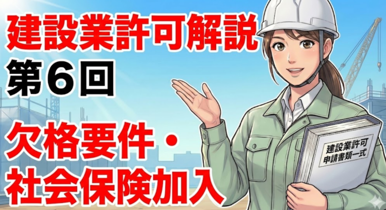 第6回は、これまでの「プラスの要件(経験やお金があるか)」とは逆に、「マイナスの要件(これがあったらダメ)」である欠格要件と、社会保険加入について解説します。